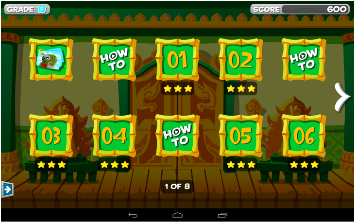 顯示主題關卡內所有的課程以及課程取得的星星數和課程教學的影片